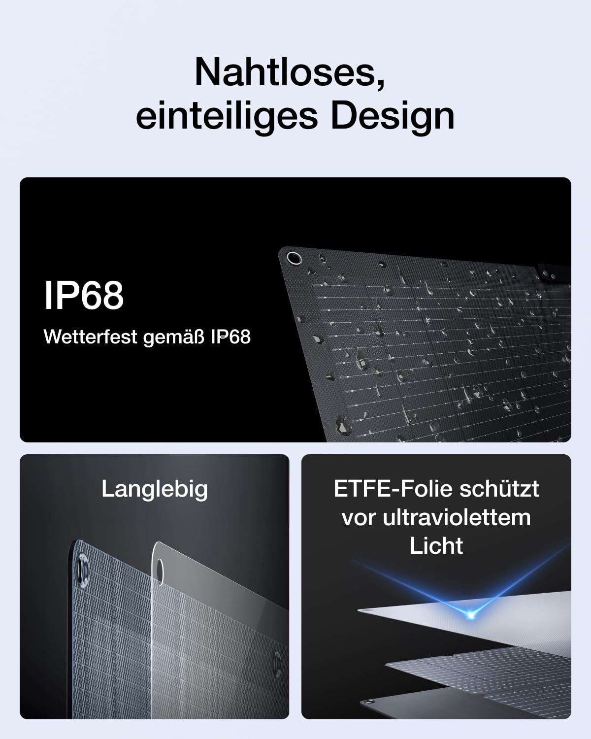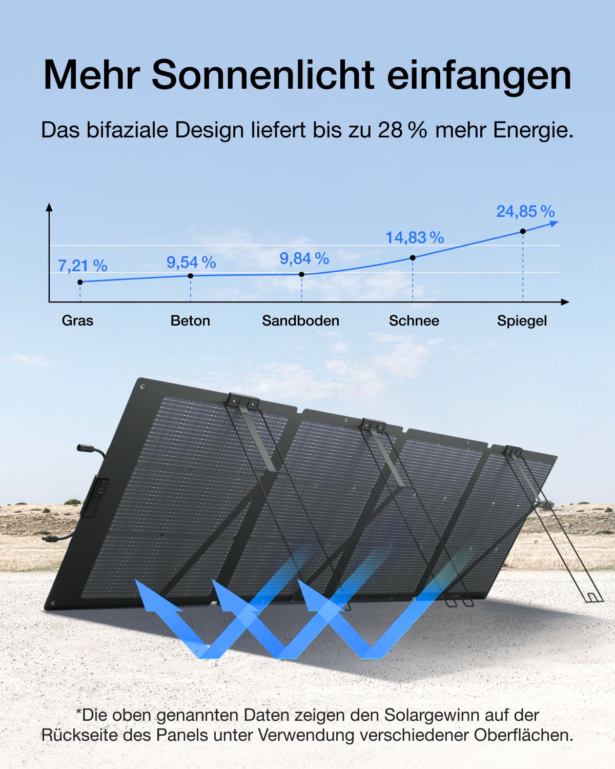 - [Saubere, nachhaltige Solarladung] Laden Sie mit diesem leichten, klappbaren bifazialen 220W-Solarmodul Ihre RIVER 2 Pro zu Hause oder unterwegs auf. Das bifaziale Design sorgt für bis zu 25 % mehr Solarenergie als ein einseitiges Modul, sodass Sie die RIVER 2 Pro in nur 4,5 Stunden aufladen können.