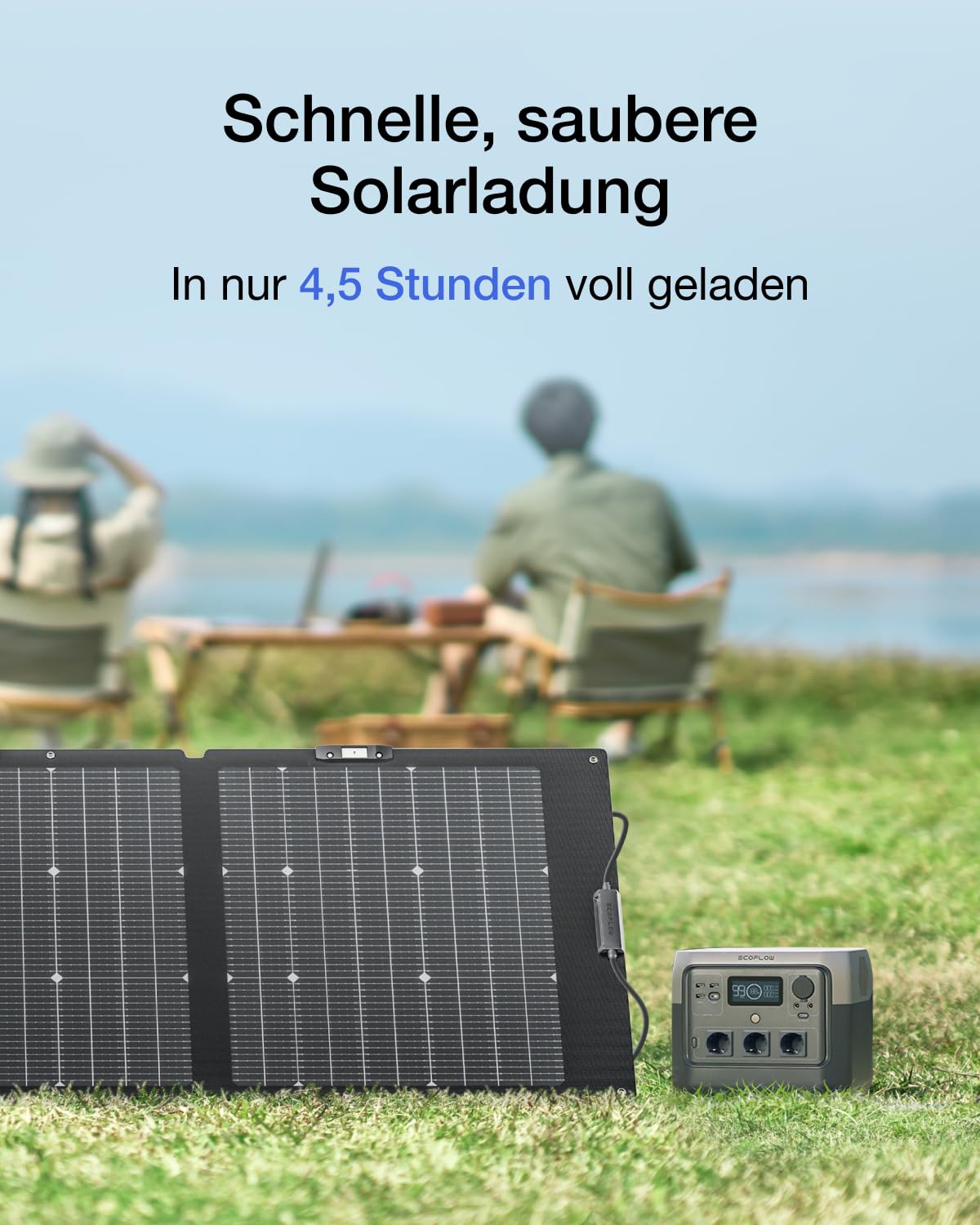 - [Schnelles Laden mit Solar] Verwenden Sie saubere, umweltfreundliche erneuerbare Energie, um die RIVER 2 Pro mit einer Solareingangsleistung von 220 W in 4,5 Stunden aufzuladen.