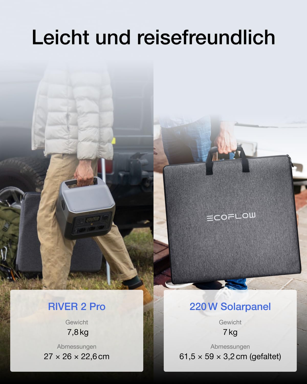 - [Leicht und tragbar] Mit einem Gewicht von nur 7,8 kg ist die RIVER 2 Pro tragbare Power station der ideale Outdoor-Generator für all Ihre Abenteuer fernab vom Stromnetz. Unser kompaktes Solarmodul wiegt nur 7 kg, damit Sie es überall hin mitnehmen können.
