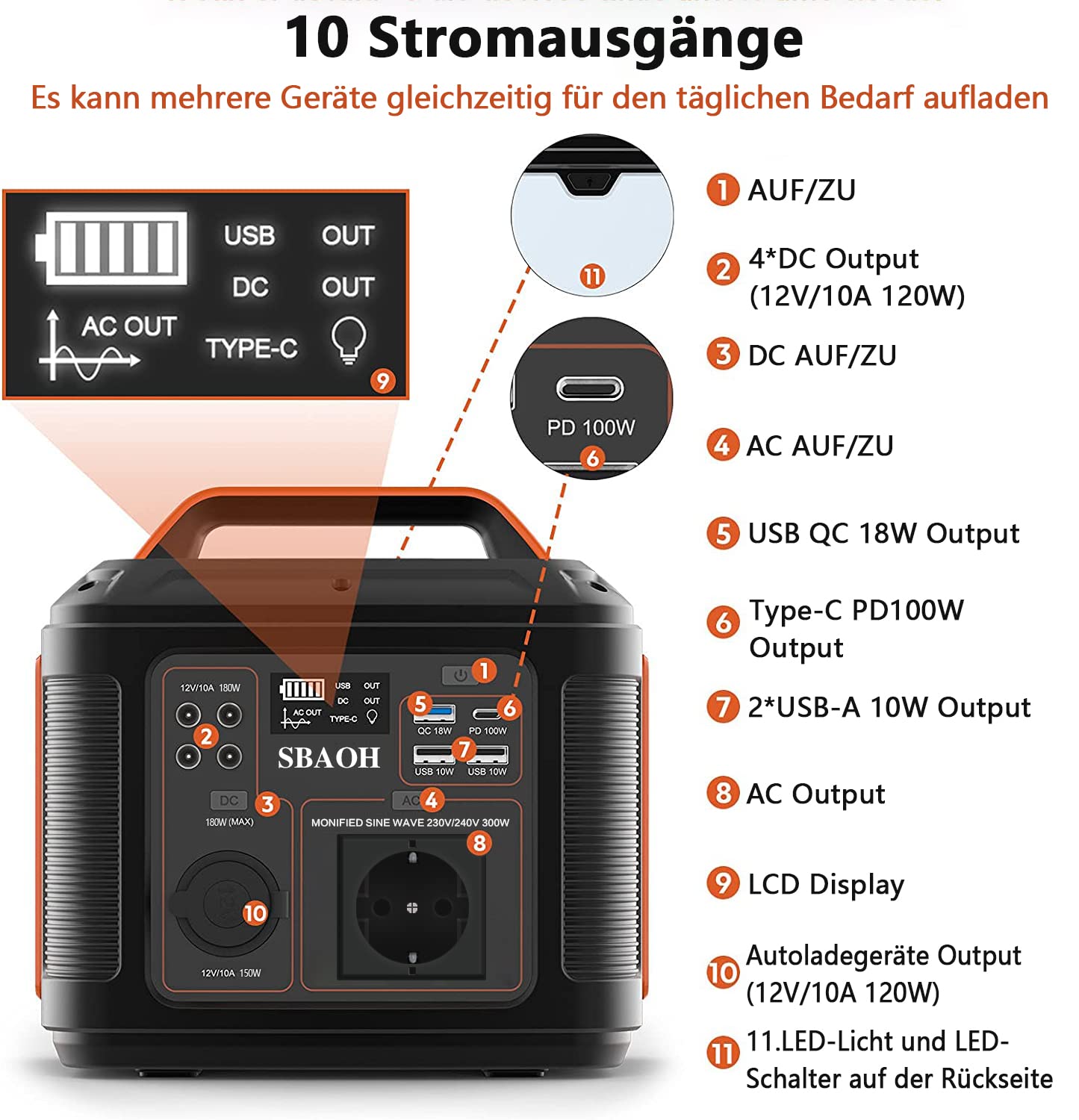 • ✅Tragbarer Generator: 296Wh mit AC-, DC-Ausgang, QC3.0- und 2 * USB-Anschlüssen, LED-Taschenlampe. Es ist sehr gut geeignet für Reisen, Wandern, Camping, Angeln, Notfälle und andere Outdoor-Aktivitäten.(Dieses Produkt wird aus einem Lager in Deutschland versendet)