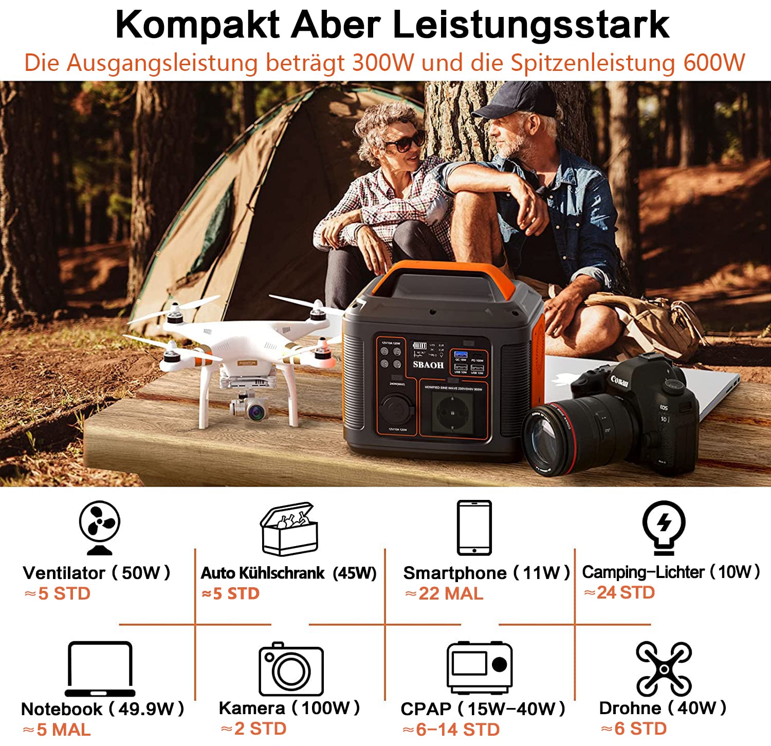 Tragbares Power Station 300W, SBAOH 296Wh Generator Schnellladung-230V AC Steckdosen/DC Ports und LED Taschenlampe,Mobile stromgenerator für Reise/Camping/Outdoor